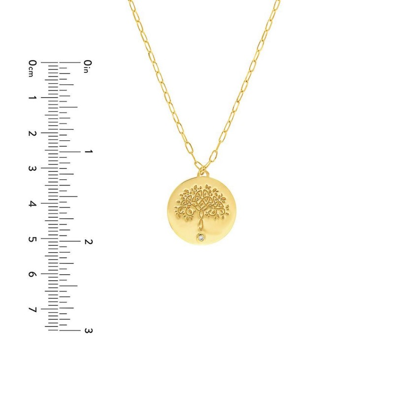 14k yellow gold adjustable necklace with 0.015 dwt diamond tree of life medallion