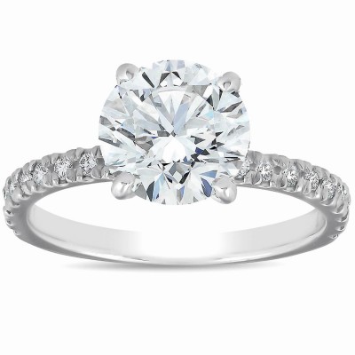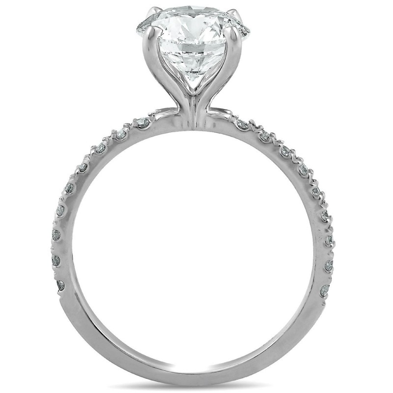 2 1/3 ct white French pave diamond solitaire engagement ring in 14k white gold