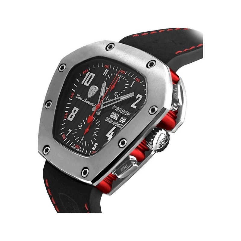 Brand: Tonino Lamborghini Target Group: Men Case Color: Silver Crystal: Anti-reflective Sapphire Bracelet Material: Leather ? mm: 51x46 Case Material: Titanium Dial Color: Black Display: Analog Strap Color: Black Product Group: Watches Functions: Date Display Watch Type: Automatic Movement Type: Automatic Water Resistance: 10 ATM